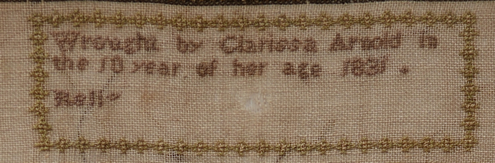 Made by Clarissa Arnold in 1831. Won by Private Collector #46 at the Caswell-Prewitt Realty, Mount Sterling, Kentucky, October 26, 2025, "Antiques, Sterling, Fine Art, Guns...Auction", lot #37. No other provenance was available from the consignor.